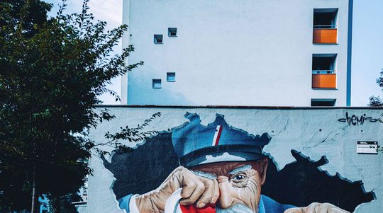 Medzi fotkami historických pamiatok Olomouca vynikne tá, kde zo steny vo vysokoškolskom internáte z mapy Československa vykukuje Tomáš Garrigue Masaryk. „V Olomouci radi robia takéto murály, nafotil som aj iný, s českým kráľom. Páči sa mi prepojenie starých vecí, architektúry so street artom. A tiež kontrast svetla a tieňa.“